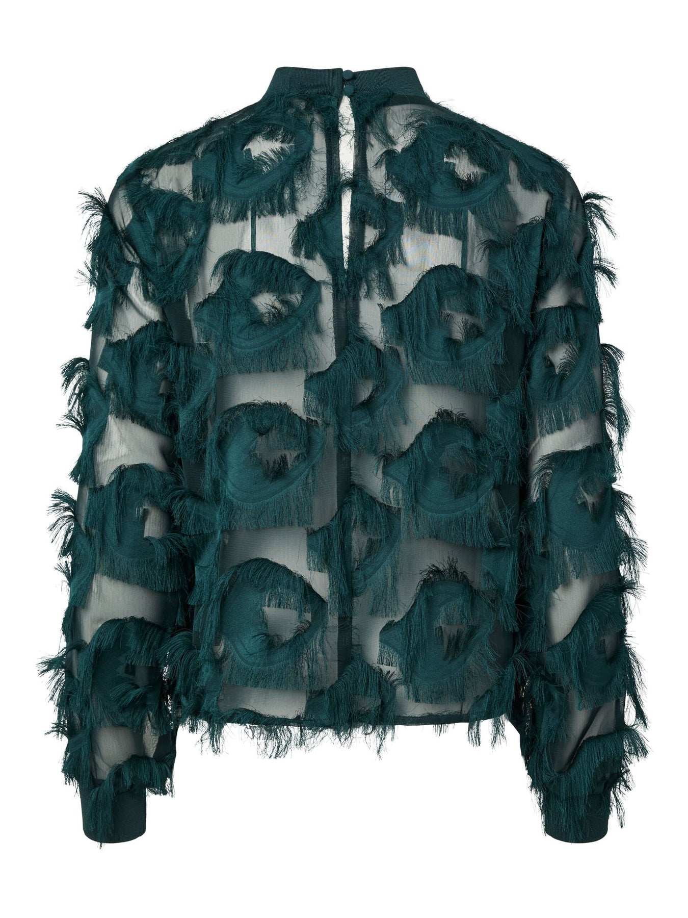 A statement piece that’s both bold and beautiful — this sheer top features a striking fringe design that plays with texture and movement.