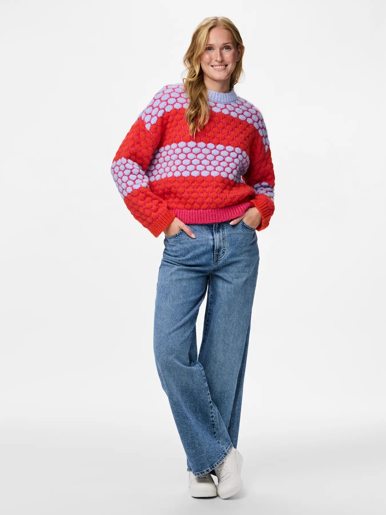 A playful pop of colour for cooler days — this knitted jumper from PIECES brings warmth and personality to your wardrobe.