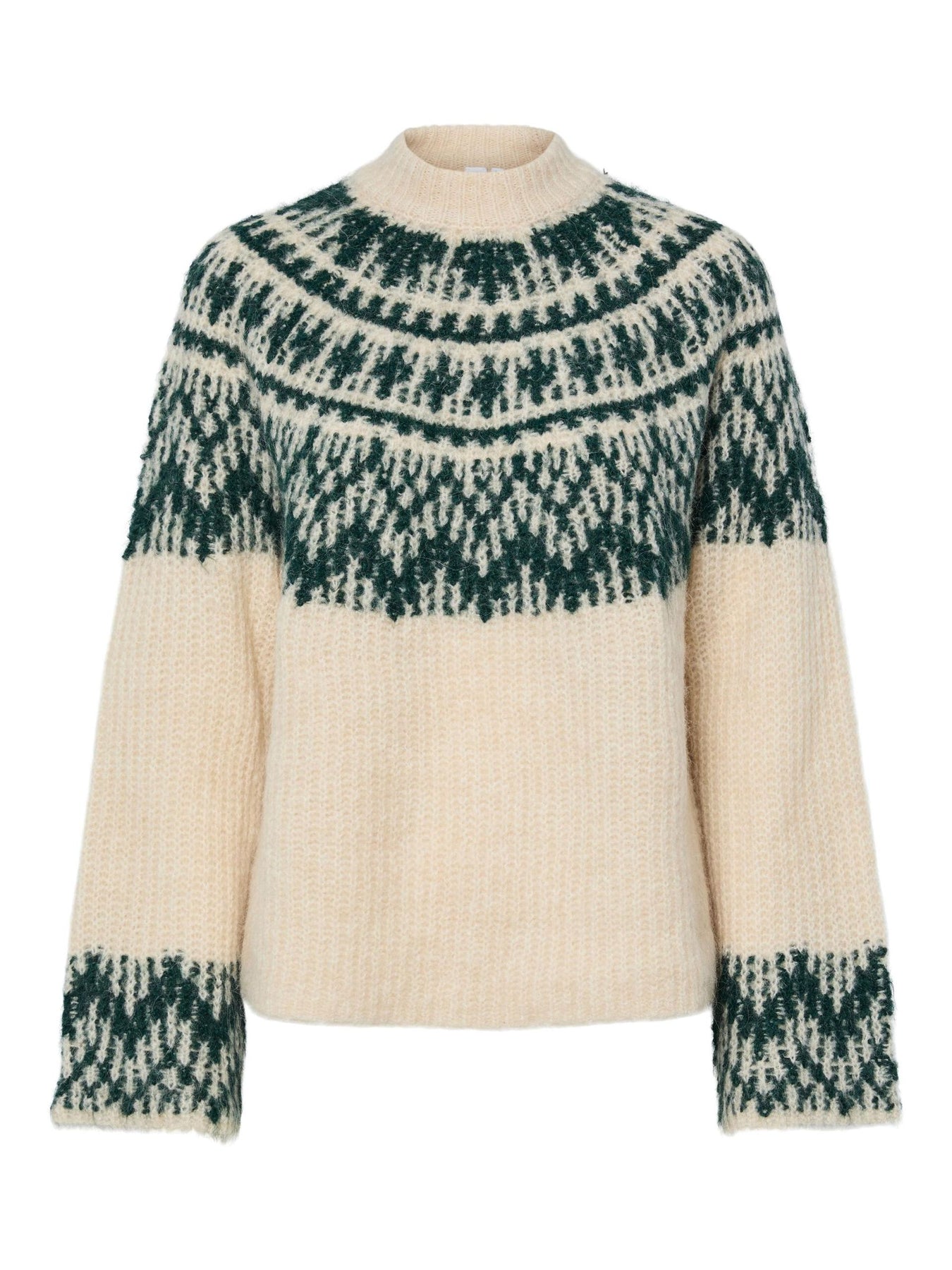 Wrap up in style with this beautifully soft knitted pullover from YAS, crafted in a luxurious 16% alpaca wool blend. Designed with a round neck and ribbed cuffs, it features a traditional Nordic-inspired pattern across the yoke and sleeves. The slightly relaxed fit makes it perfect for layering, offering both warmth and timeless winter charm.