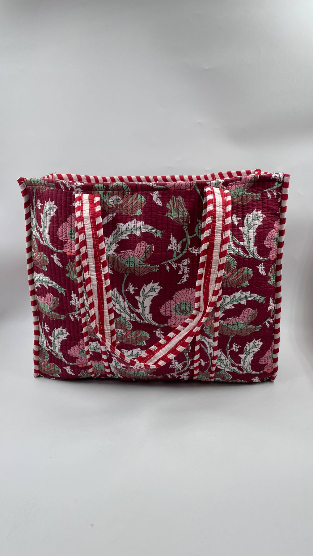 Kantha Quilted Red/Burgundy Floral Reversible Tote Bag