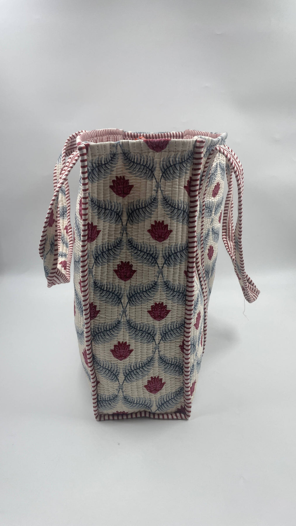 Handcrafted in Jaipur, India, these premium cotton tote bags feature beautiful traditional block printing and timeless boho style. Each bag is made with care using the finest quality cotton and quilted with intricate Kantha stitching.