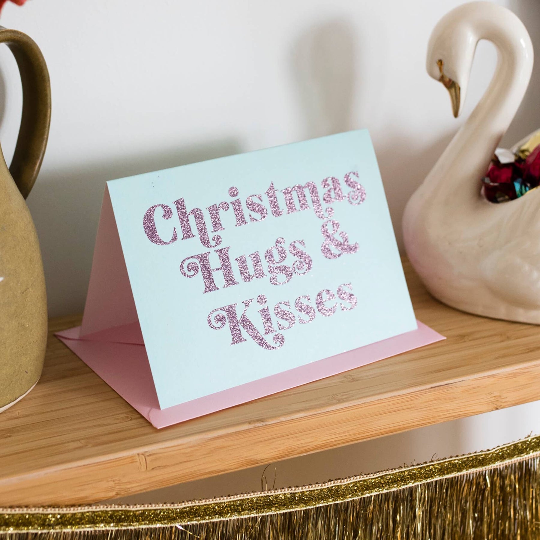 'Christmas Hugs & Kisses' Retro Glitter Card: Cello