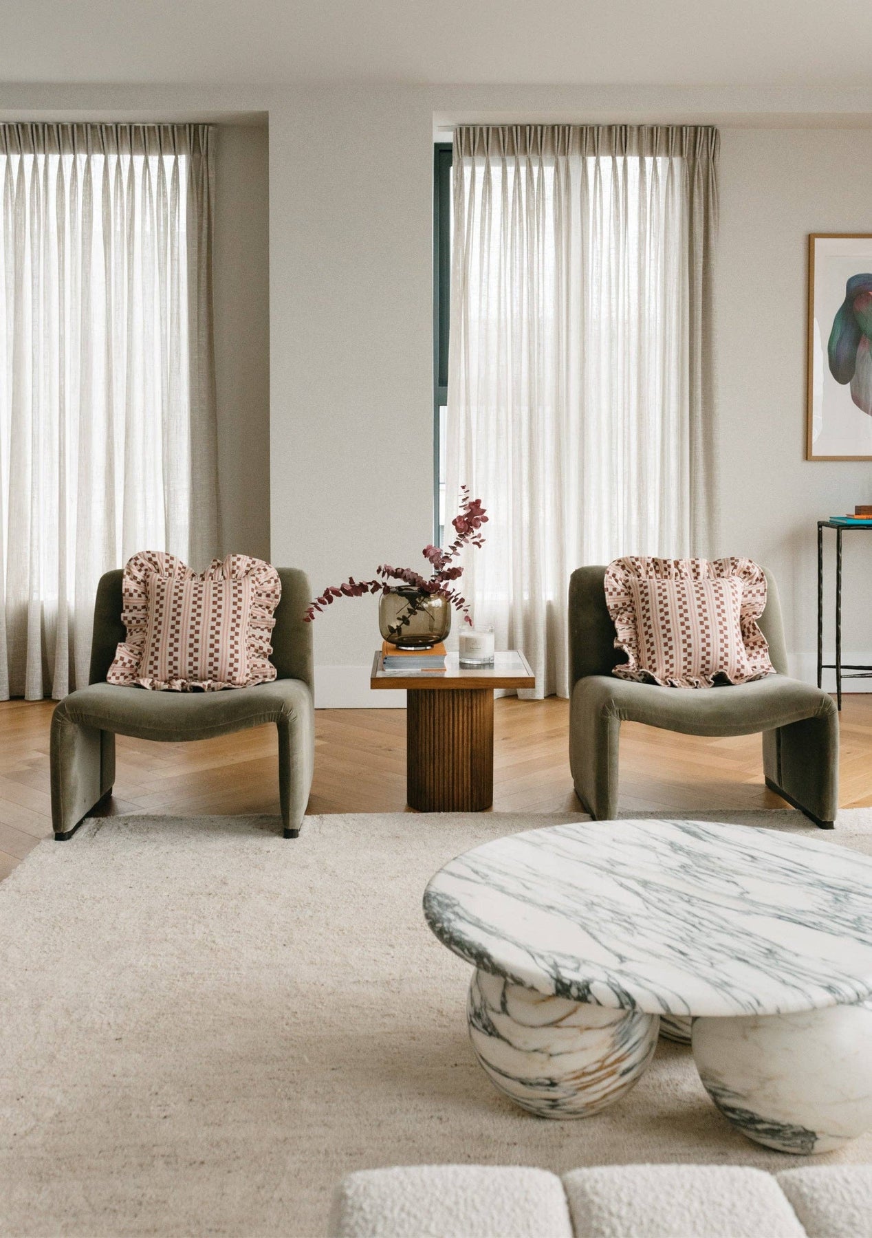 This pink, cream and rust stripe cushion cover in a square shape and ruffled edge is woven from a durable blend of 70% high-quality cotton and 30% recycled polyester. The soft pink hue and checkerboard stripe design make it a versatile addition to any home decor. Designed in our Edinburgh Studio. Size | 40cm x 40cm | 15 x 15" excluding trim. (40cm x 40cm inner cushion size) Fibre | 100% Cotton Woven In | India Care | Machine wash at 30° Barcode | 5055603545361