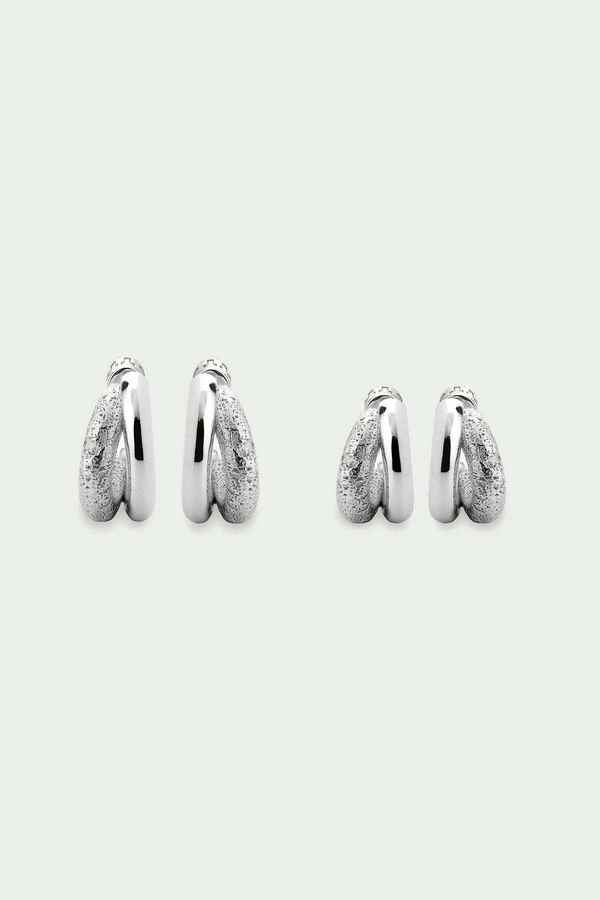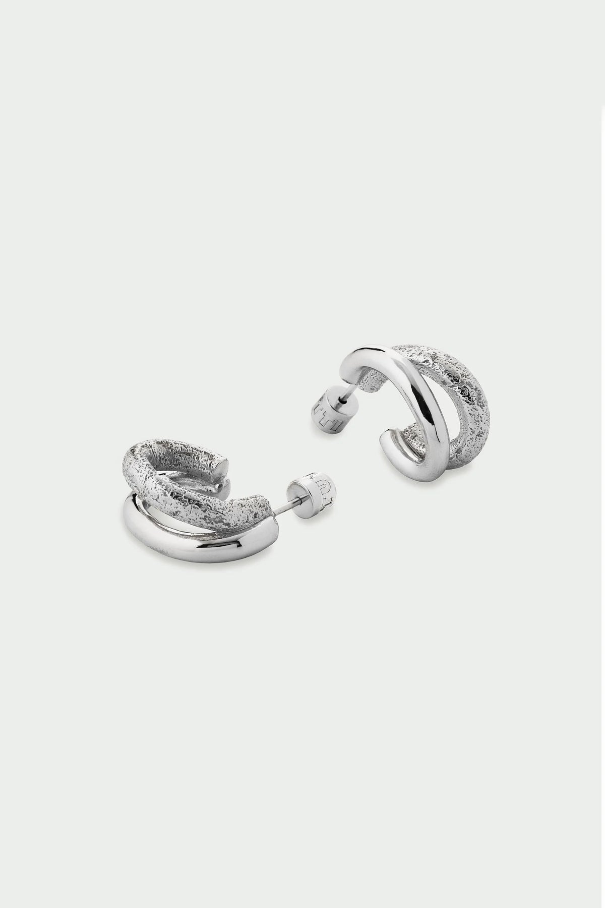 Make a statement with sculptural elegance. The Mirage Earrings in Large Silver by Tutti & Co are a bold, contemporary take on classic hoops — featuring intertwined polished and textured bands for a look that’s both modern and artisanal.