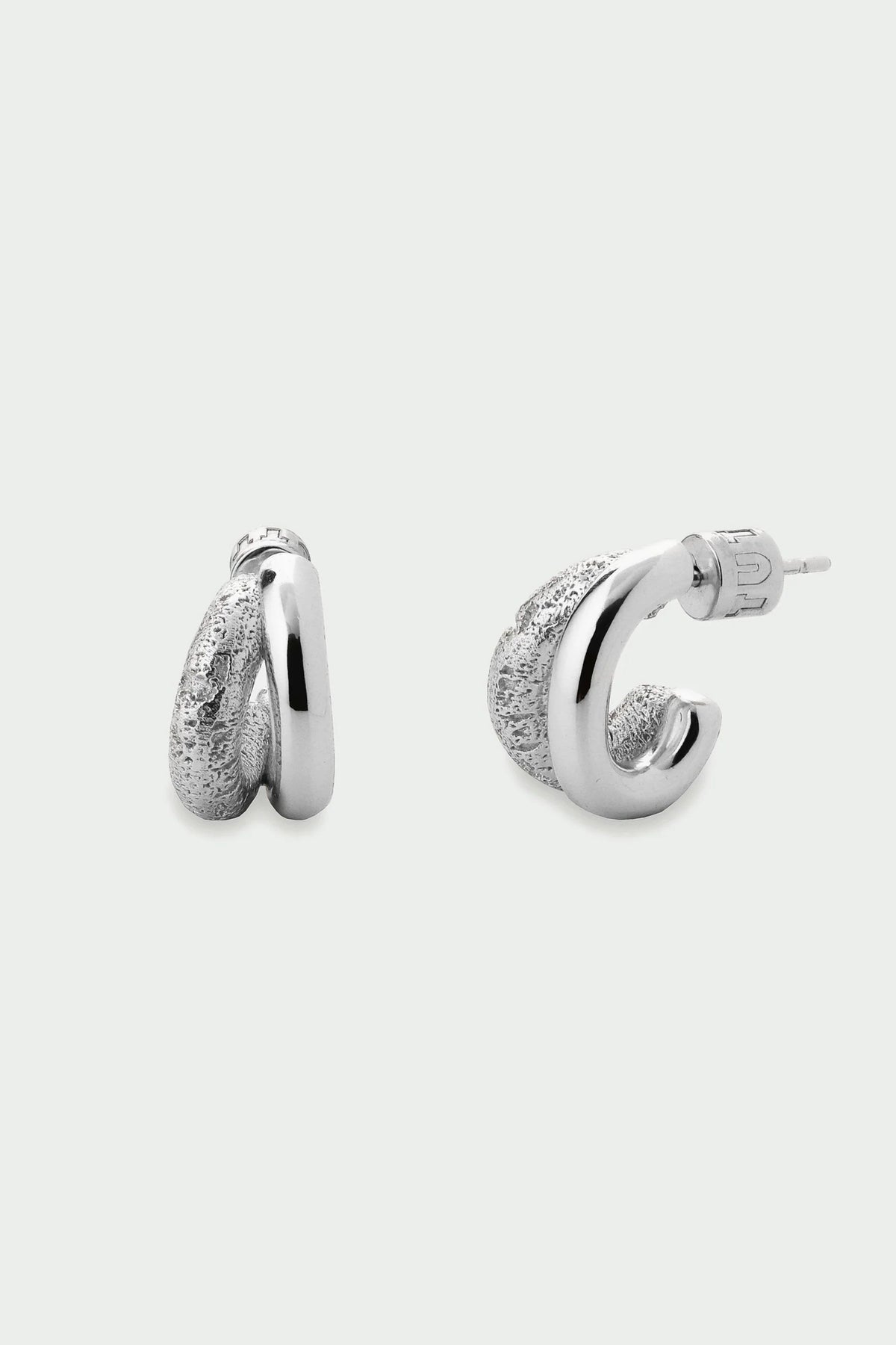 Elevate your ear stack with sculptural style — the Mirage Earrings (Small) by Tutti & Co are designed to blend bold form with elegant detail. Featuring a double hoop design, one smooth and polished, the other textured and matte, these earrings strike the perfect balance between contrast and harmony.